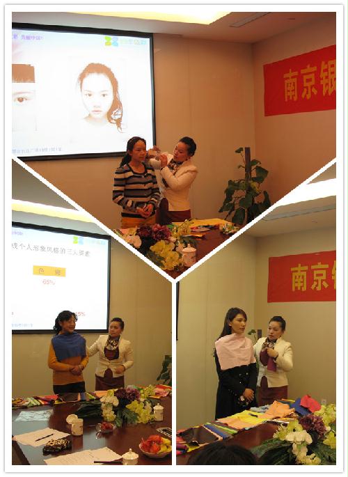 本次活动总行财富管理中心特邀武汉四季色彩形象设计有限公司高级色彩顾问丹琳老师为大家介绍有关色彩鉴定、服饰搭配等相关知识,丹琳老师具有丰富形象咨询工作经验和个人色彩属性鉴定经验,尤其擅长服饰搭配设计。她轻松活泼的演讲风格,专业的实战水平,令现场客户听得聚精会神,讲座中途还穿插了互动游戏,邀请客户代表现场进行色彩鉴定、服务搭配建议等,并指导多种丝巾搭配扎法,在场客户欣喜万分,纷纷学习交流。